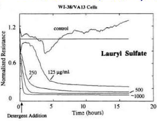 上圖是十二烷基磺酸鈉對(duì)WI-38細(xì)胞的作用,可以看出這種化合物對(duì)細(xì)胞的生長有著明顯的抑制作用,并且濃度越高抑制效果越顯著。