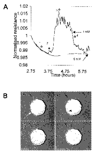 ECIS圓孔電極首先包被明膠層,然后HUVEC細(xì)胞懸液加入到板孔中,在加入細(xì)胞后的2個(gè)小時(shí)形成單細(xì)胞層: